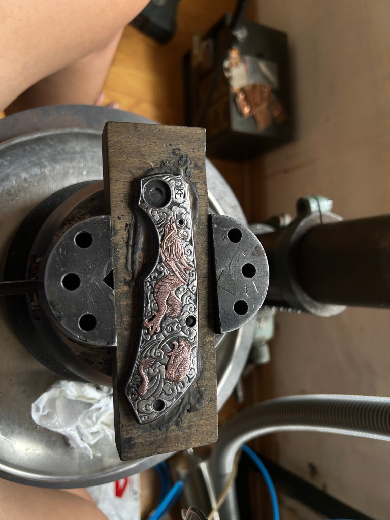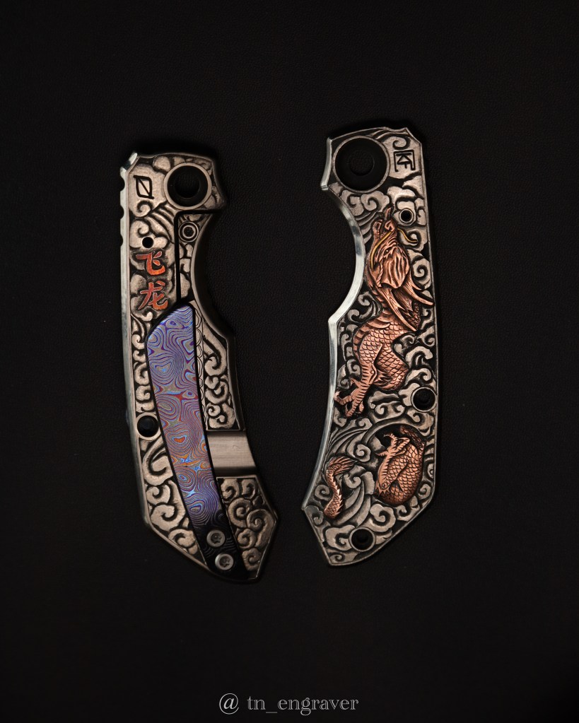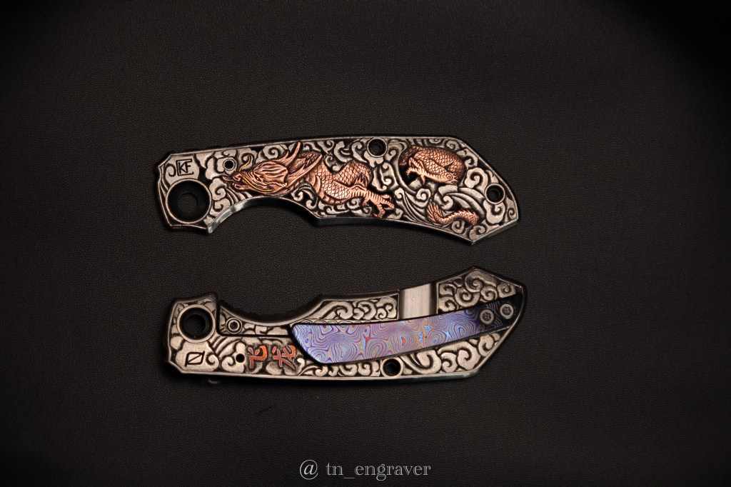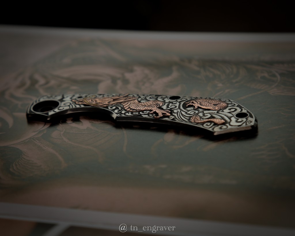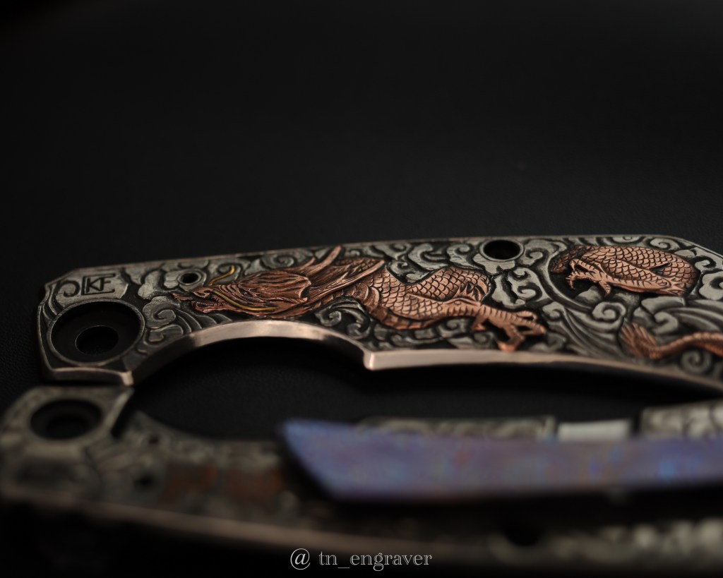 A 4-month journey of hand engraving, copper & gold over-lay inlay on titanium.
